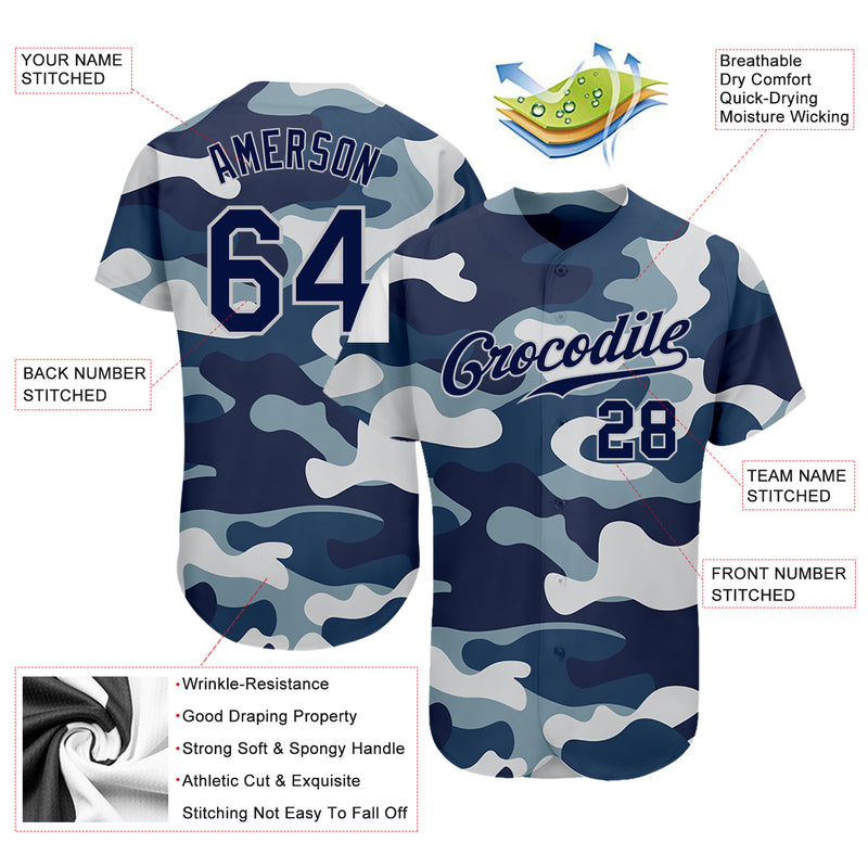 Custom Camo Navy-Gray Authentic Salute To Service Baseball Jersey