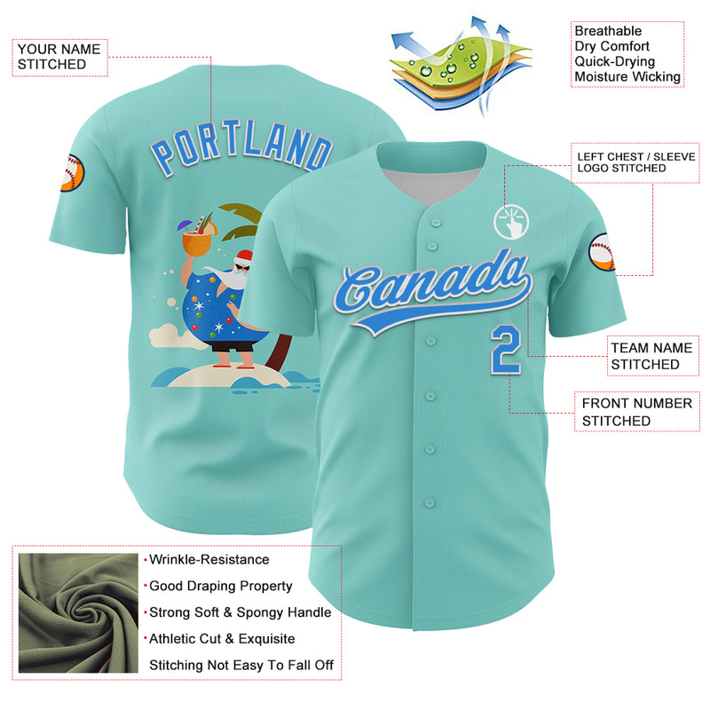 Custom Ice Blue Electric Blue-White 3D Funny Christmas Authentic Baseball Jersey