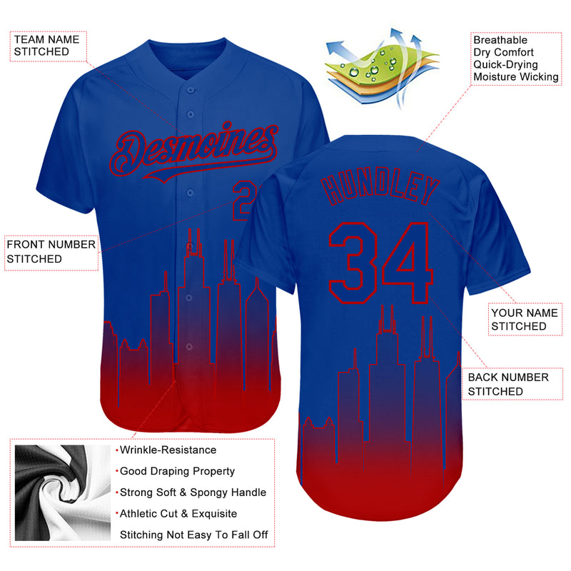 Custom Royal Red 3D Chicago City Edition Fade Fashion Authentic Baseball Jersey