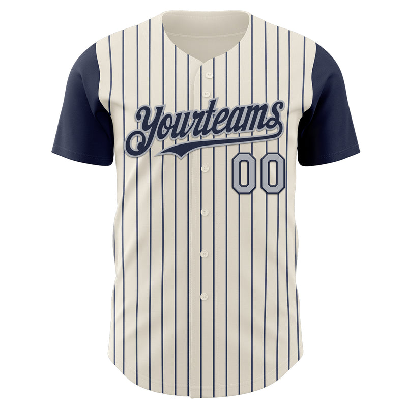 Custom Cream Navy Pinstripe Gray Authentic Two Tone Baseball Jersey