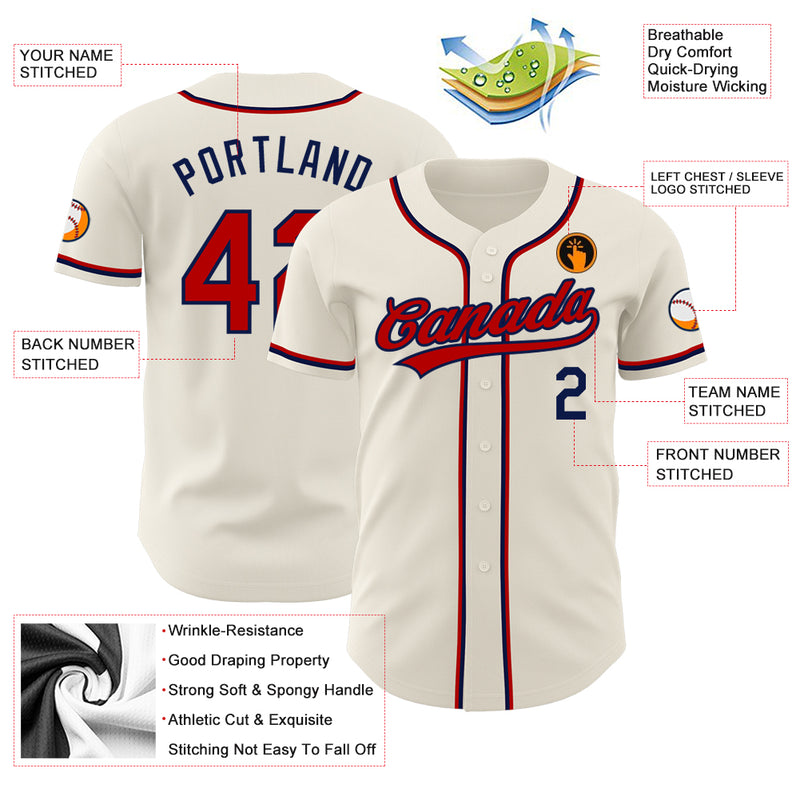 Custom Cream Red-Navy Authentic Baseball Jersey