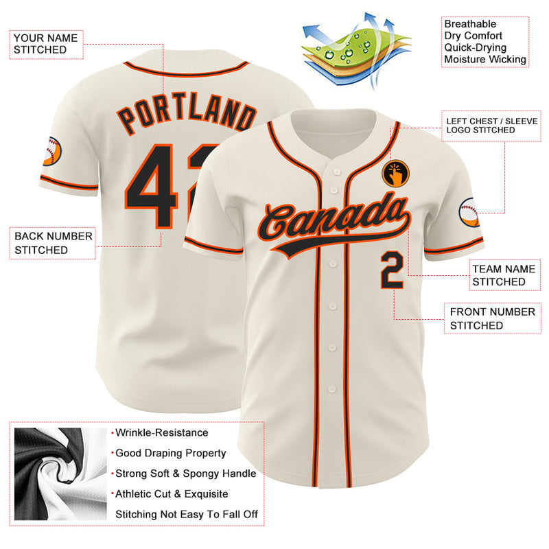 Custom Cream Black-Orange Authentic Baseball Jersey