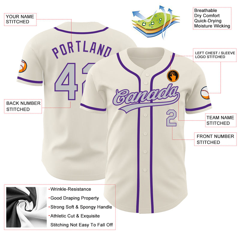 Custom Cream Gray-Purple Authentic Baseball Jersey