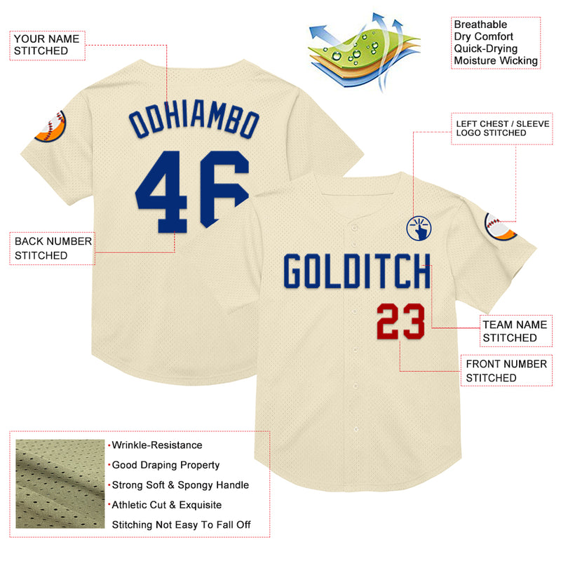 Custom Cream Royal-Red Mesh Authentic Throwback Baseball Jersey