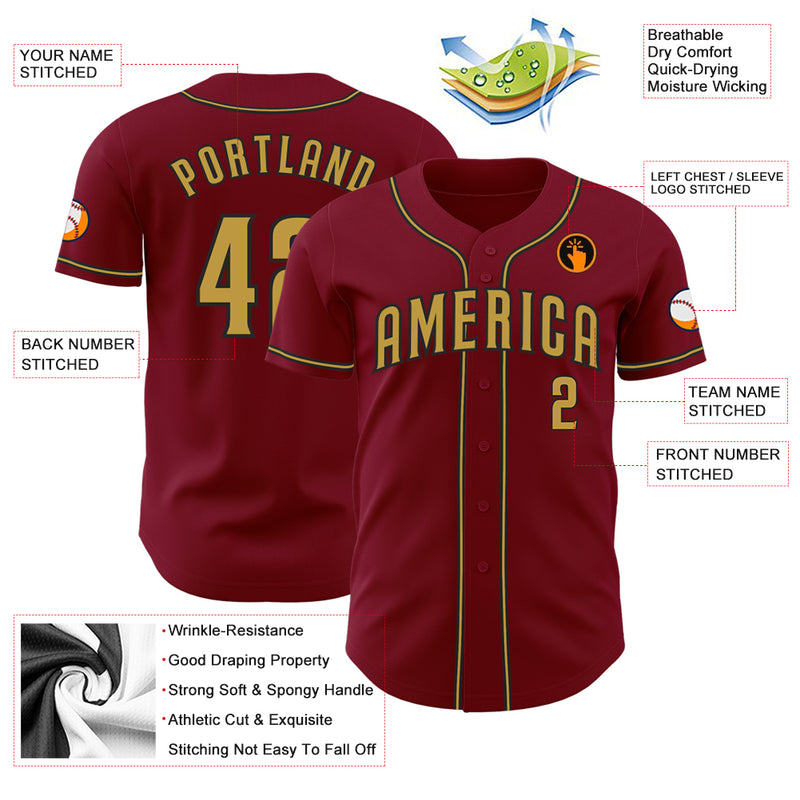 Custom Crimson Old Gold-Black Authentic Baseball Jersey