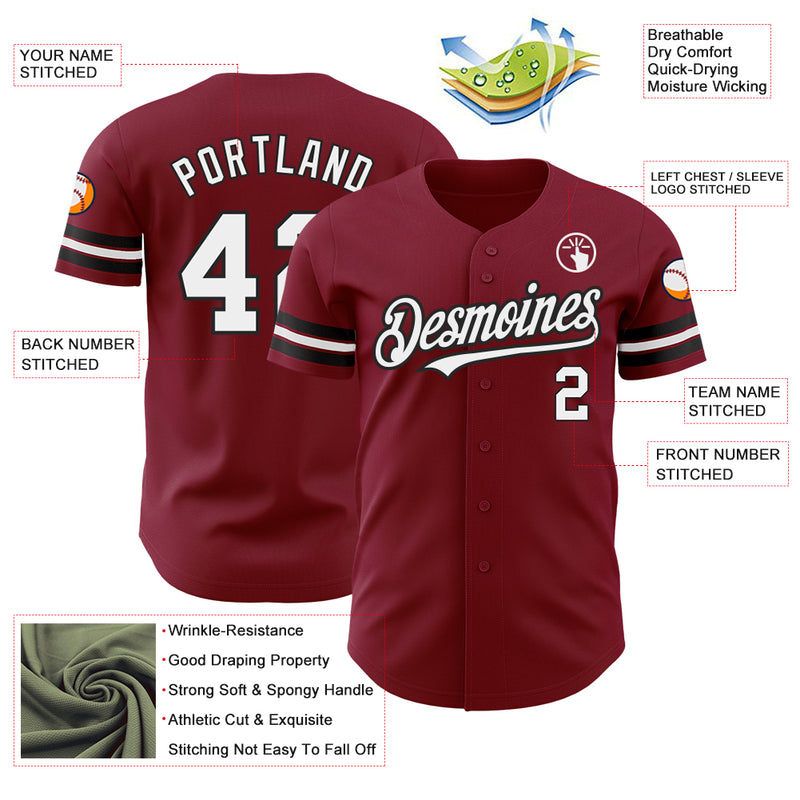 Custom Crimson White-Black Authentic Baseball Jersey