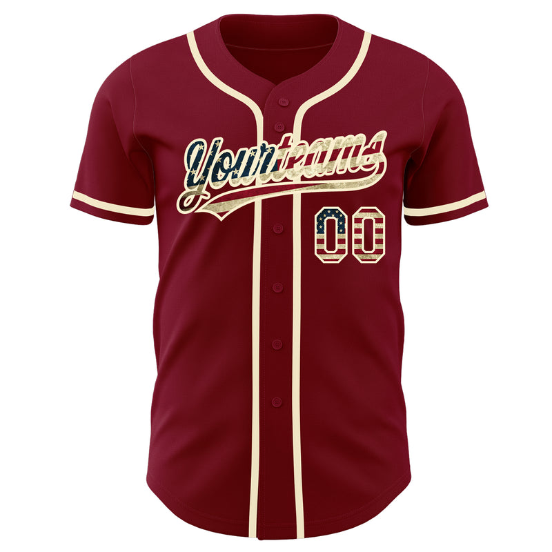 Custom Crimson Vintage USA Flag-Cream Authentic Baseball Jersey