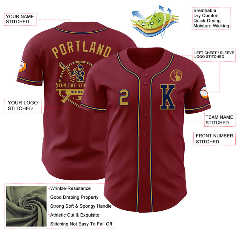 Custom Crimson Old Gold-Navy Authentic Baseball Jersey