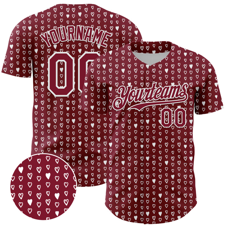 Custom Crimson White 3D Pattern Design Hearts Authentic Baseball Jersey