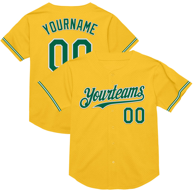 Custom Gold Kelly Green-White Mesh Authentic Throwback Baseball Jersey