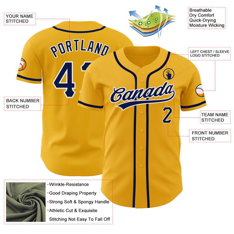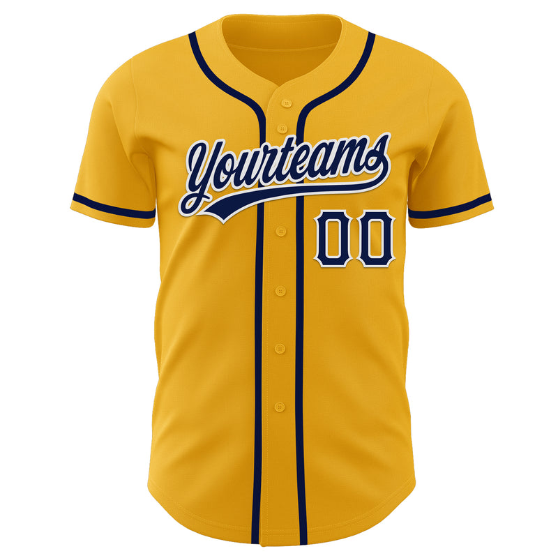 Custom Gold Navy-White Authentic Baseball Jersey