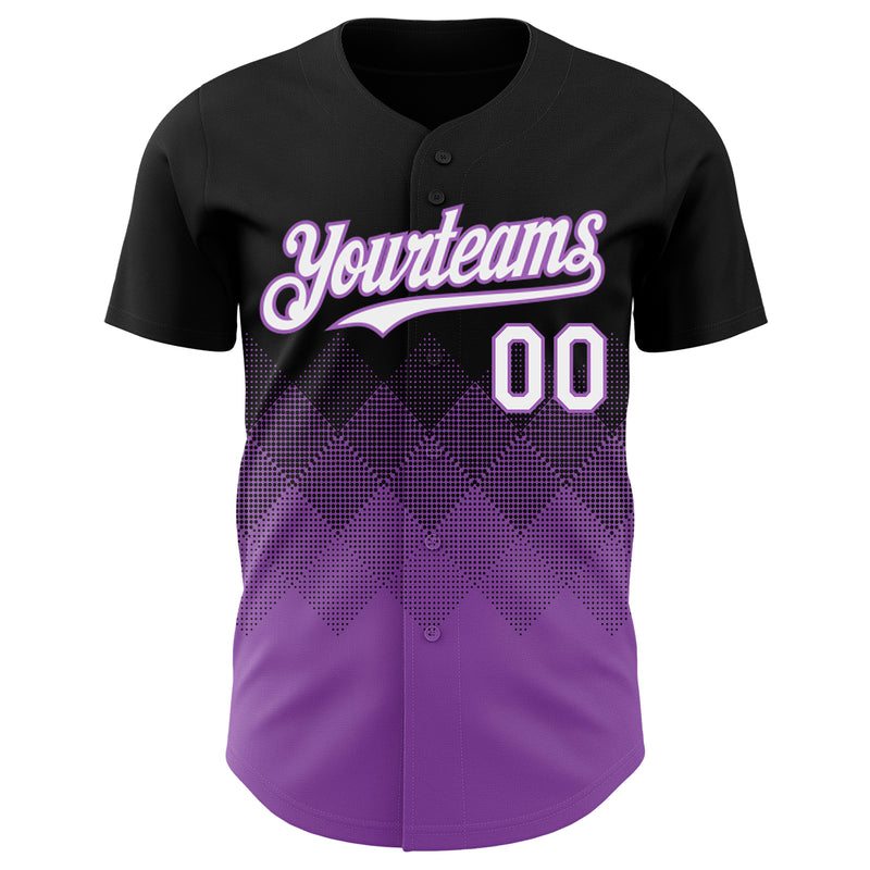 Custom Black White-Medium Purple 3D Gradient Square Shape Authentic Baseball Jersey