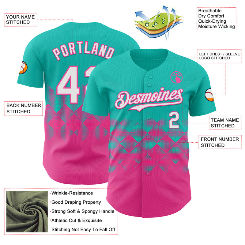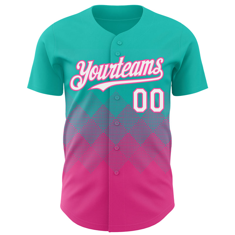 Custom Aqua White-Pink 3D Gradient Square Shape Authentic Baseball Jersey