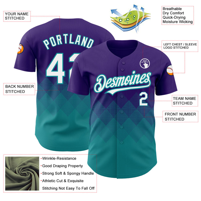 Custom Purple White-Teal 3D Pattern Design Gradient Square Shapes Authentic Baseball Jersey