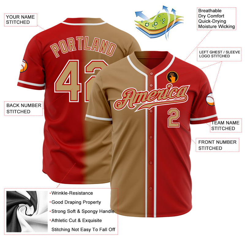 Custom Red Old Gold-White Authentic Gradient Fashion Baseball Jersey