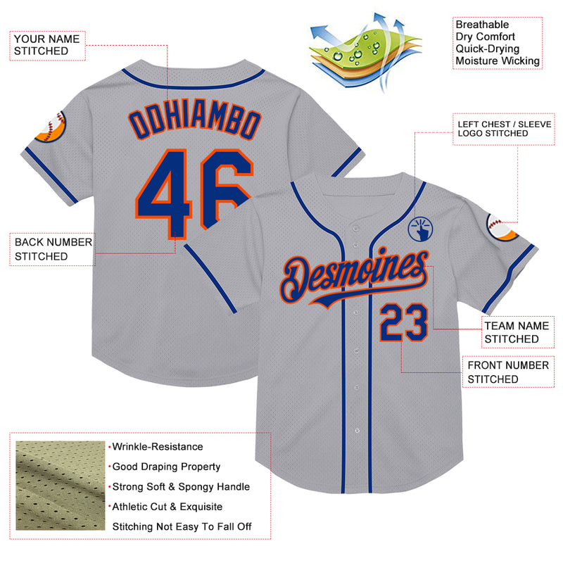 Custom Gray Royal-Orange Mesh Authentic Throwback Baseball Jersey