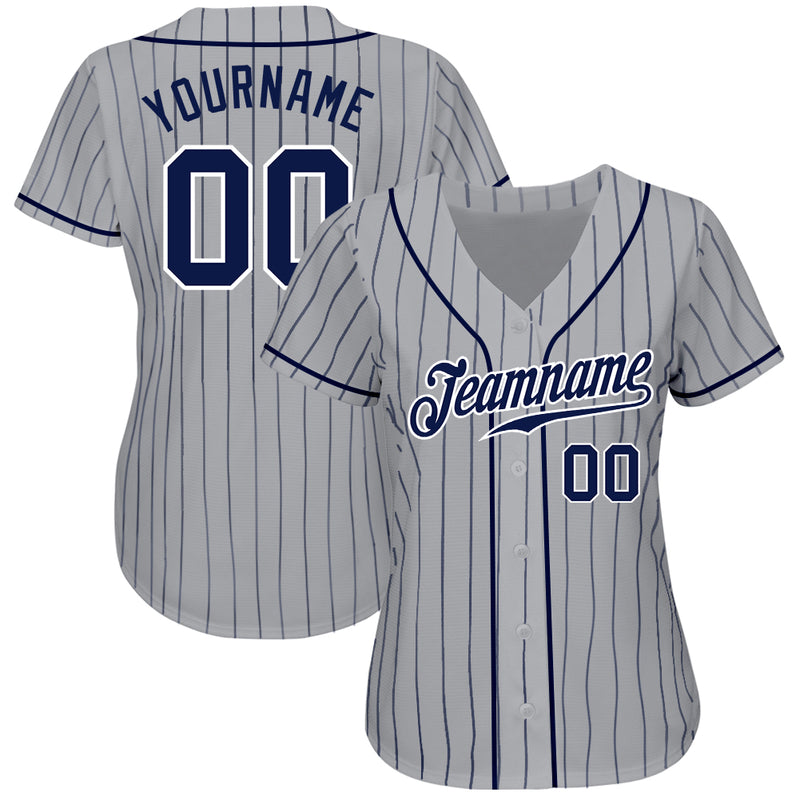 Custom Gray Navy Pinstripe Navy-White Authentic Baseball Jersey