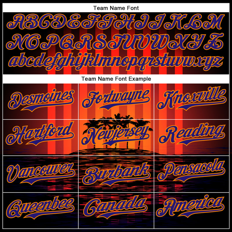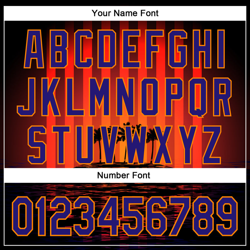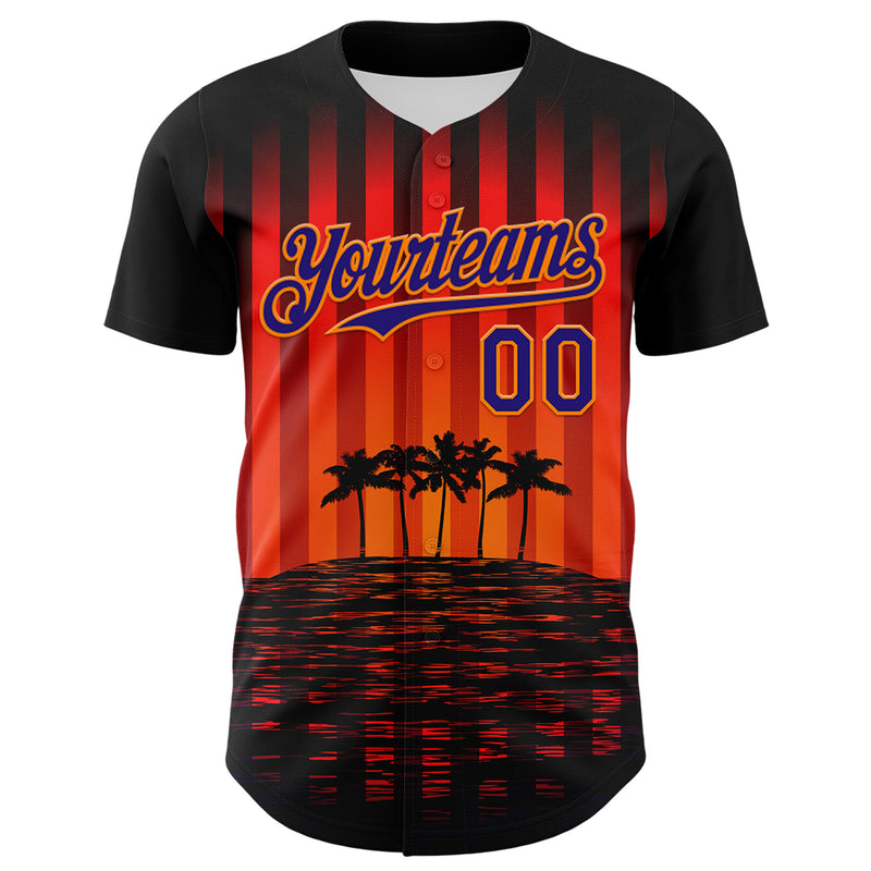 Custom Black Dark Purple-Bay Orange 3D Pattern Design Rave Psychedelic Tropical Palm Tree Authentic Baseball Jersey