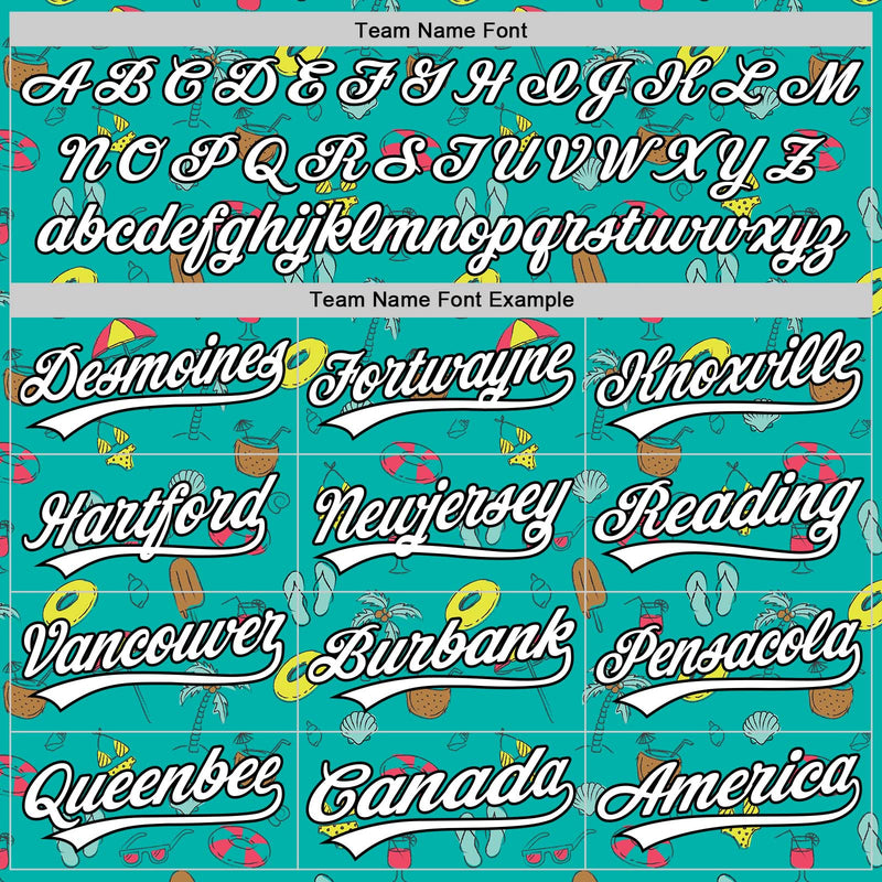 Custom Aqua White-Black 3D Hawaii Tropical Palm Tree And Beach Authentic Baseball Jersey