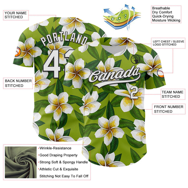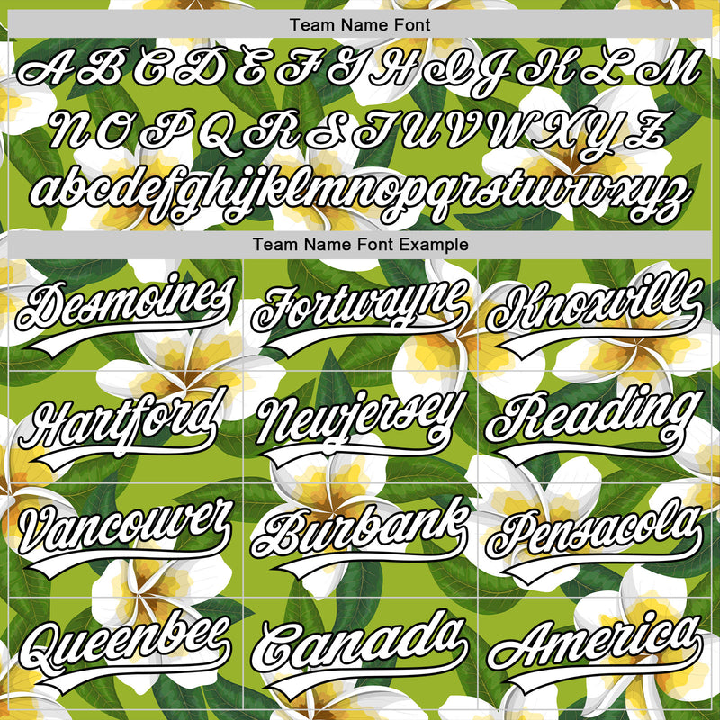 Custom Green White-Black 3D Tropical Hawaii Jungle Leaves And Flower Authentic Baseball Jersey