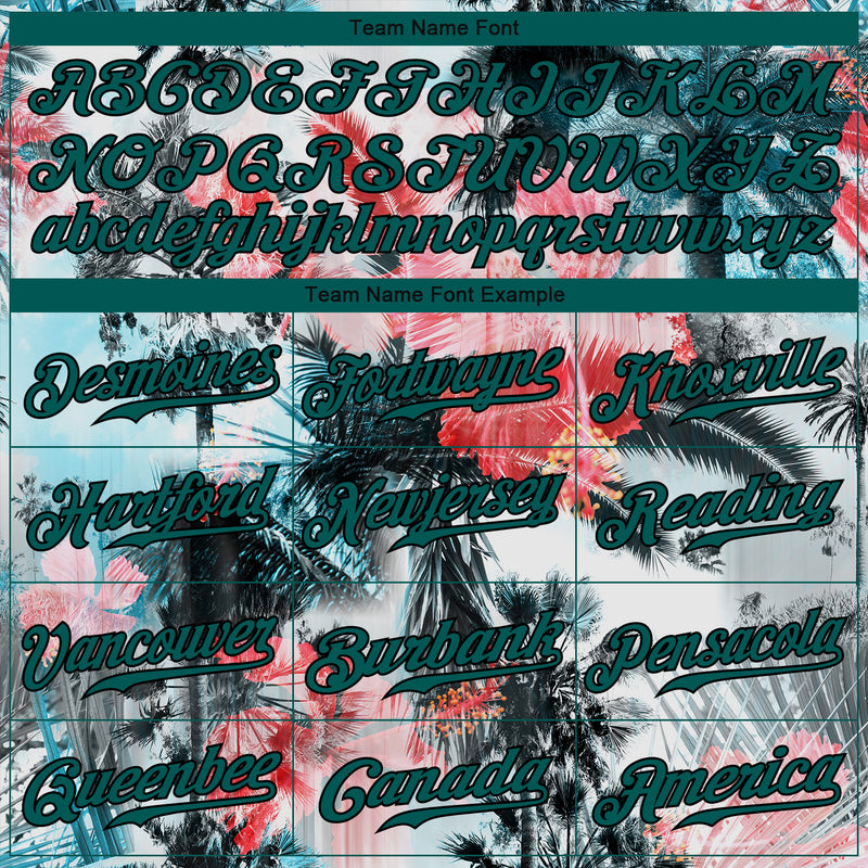 Custom White Midnight Green-Black 3D Pattern Design Hawaii Palm Trees Authentic Baseball Jersey