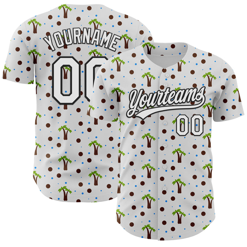 Custom White Black 3D Hawaii Tropical Palm Tree Authentic Baseball Jersey