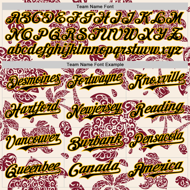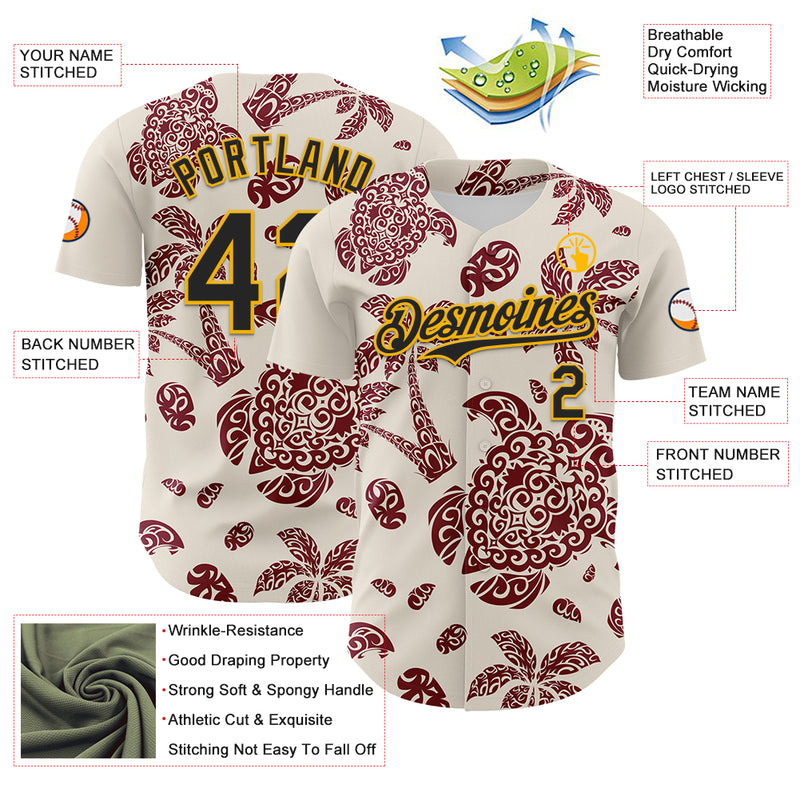 Custom Cream Black Crimson-Gold 3D Polynesian Style Palm Trees Islander Authentic Baseball Jersey