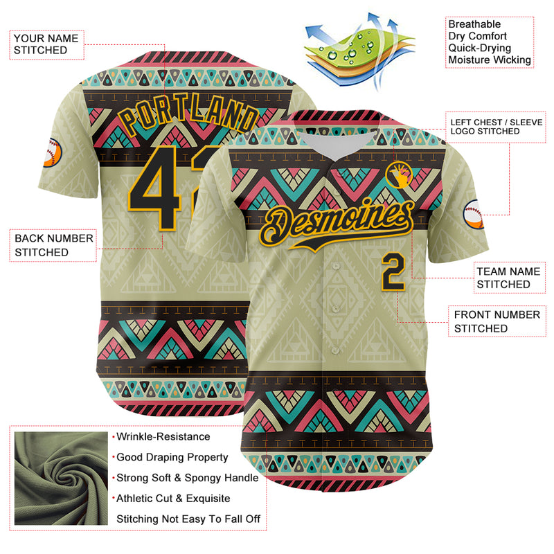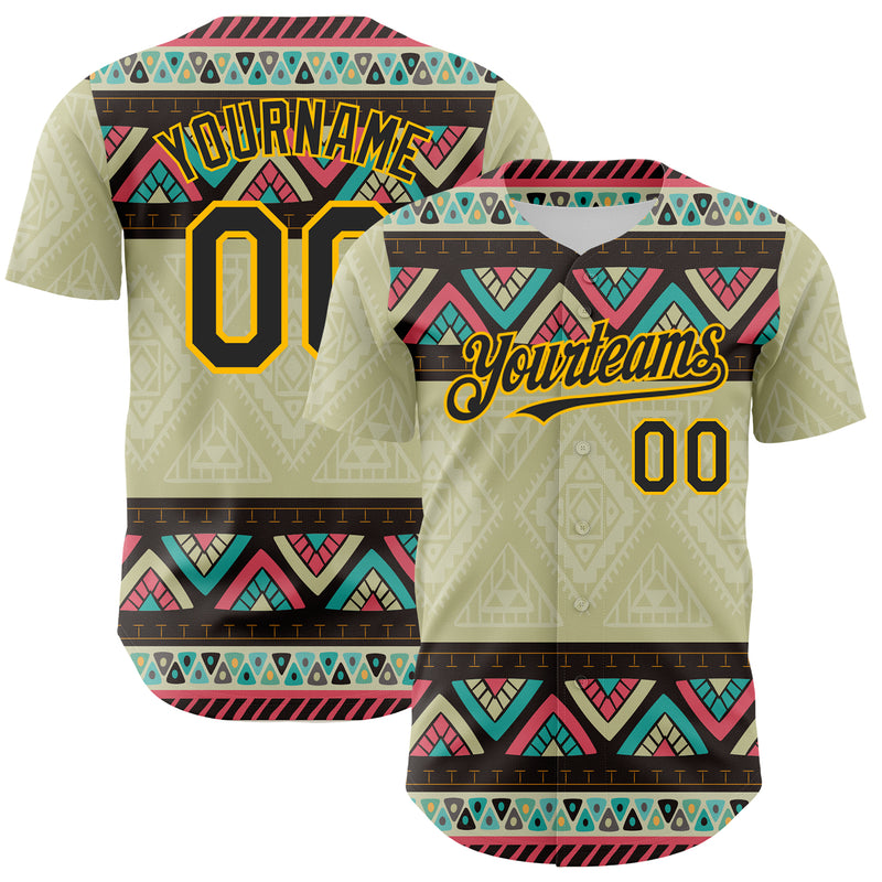 Custom Green Black-Gold 3D Polynesian Style Islander Authentic Baseball Jersey