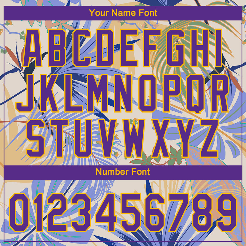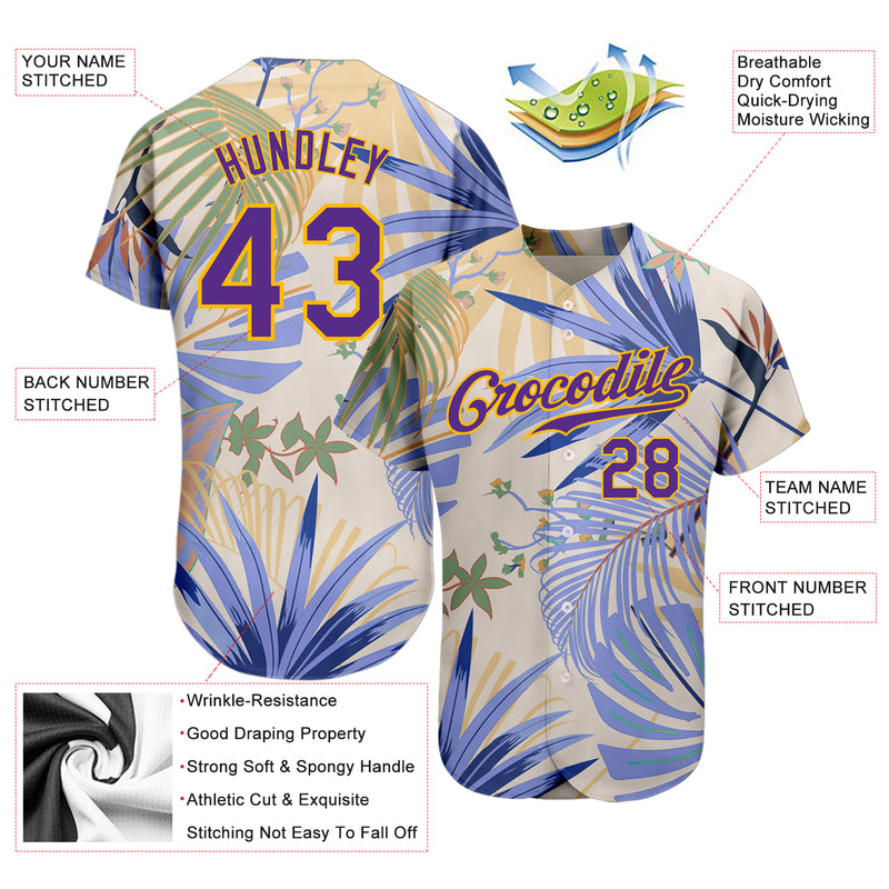 Custom White Purple-Gold 3D Pattern Design Hawaii Palm Leaves And Flowers Authentic Baseball Jersey