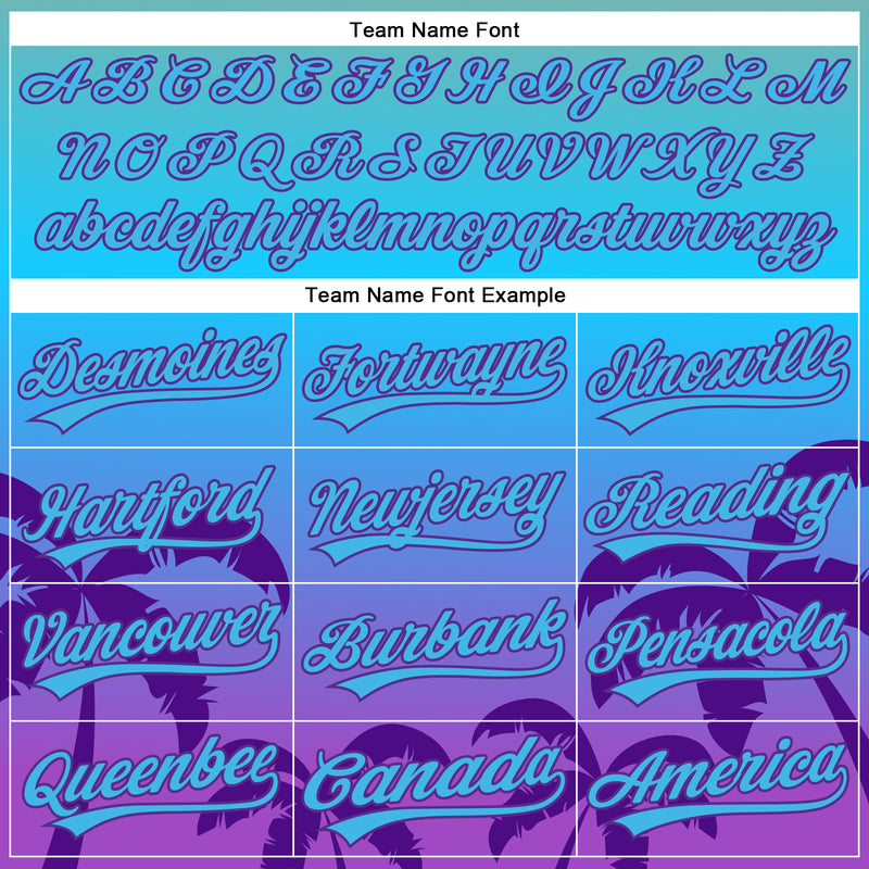 Custom Sky Blue Purple 3D Pattern Design Hawaii Palm Trees Authentic Baseball Jersey