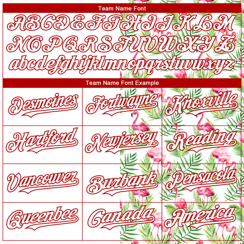 Custom White Red 3D Pattern Design Tropical Hawaii Palm Leaves And Flamingo Authentic Baseball Jersey