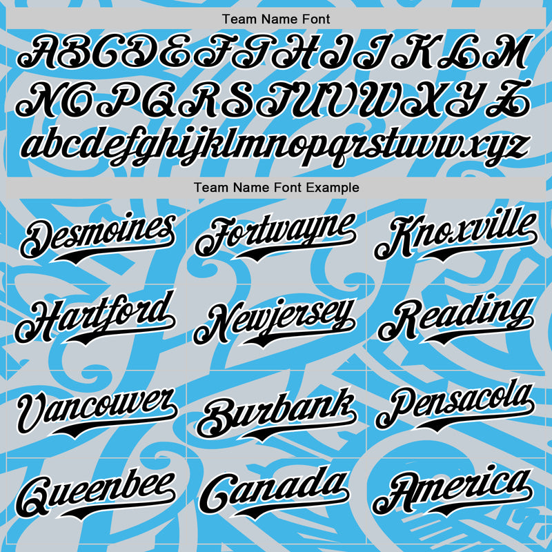 Custom Sky Blue Black Silver-White 3D Polynesian Style Islander Authentic Baseball Jersey