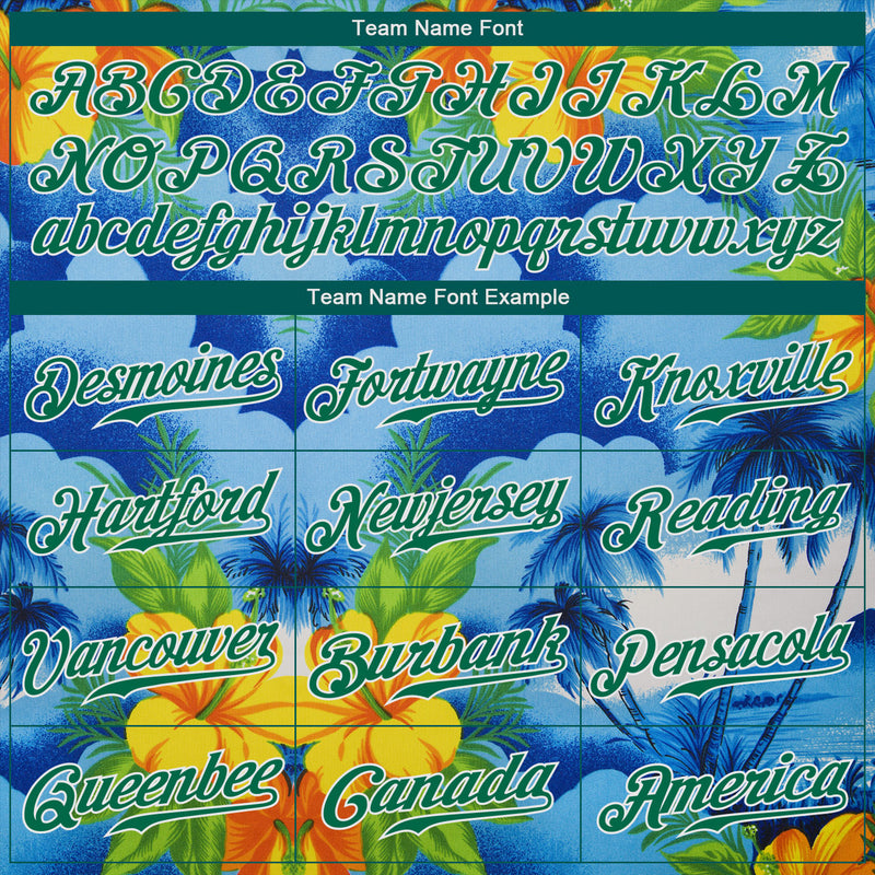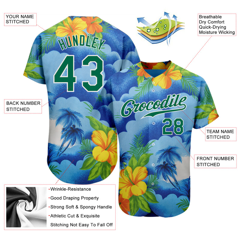 Custom White Kelly Green 3D Pattern Design Beach Hawaii Palm Trees And Flowers Authentic Baseball Jersey