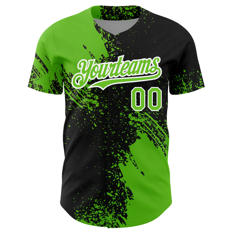 Custom Aurora Green Black-White 3D Pattern Design Abstract Brush Stroke Authentic Baseball Jersey