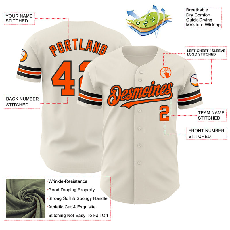 Custom Cream Orange-Black Authentic Baseball Jersey
