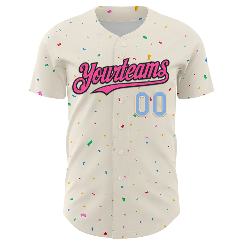 Custom Cream Pink Black-Light Blue 3D Pattern Design Confetti Authentic Baseball Jersey