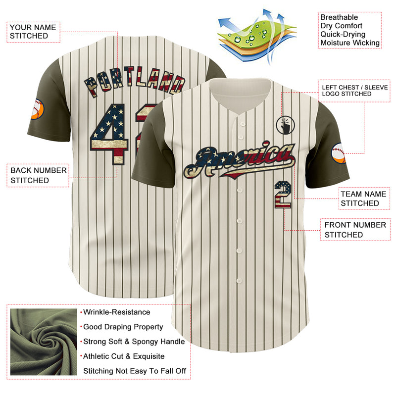 Custom Cream Olive Pinstripe Vintage USA Flag-Black Authentic Two Tone Baseball Jersey