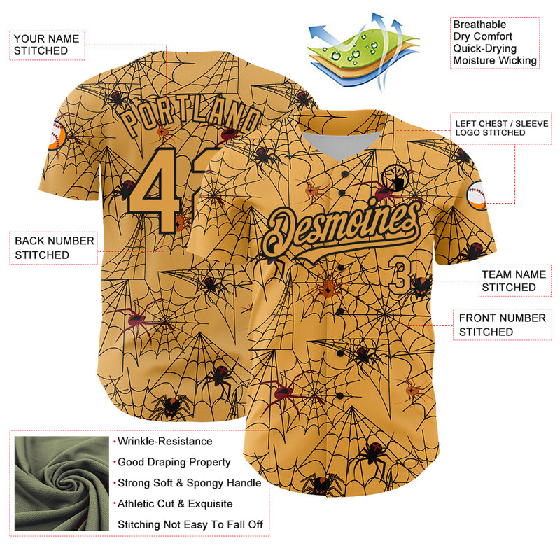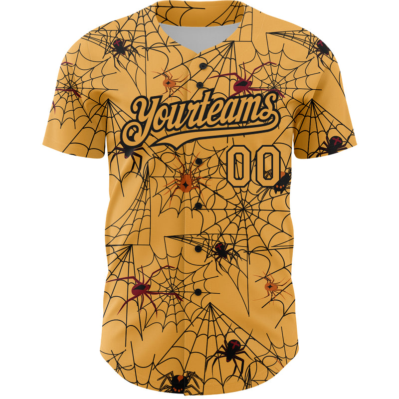 Custom Gold Black 3D Pattern Design Spider Web Authentic Baseball Jersey