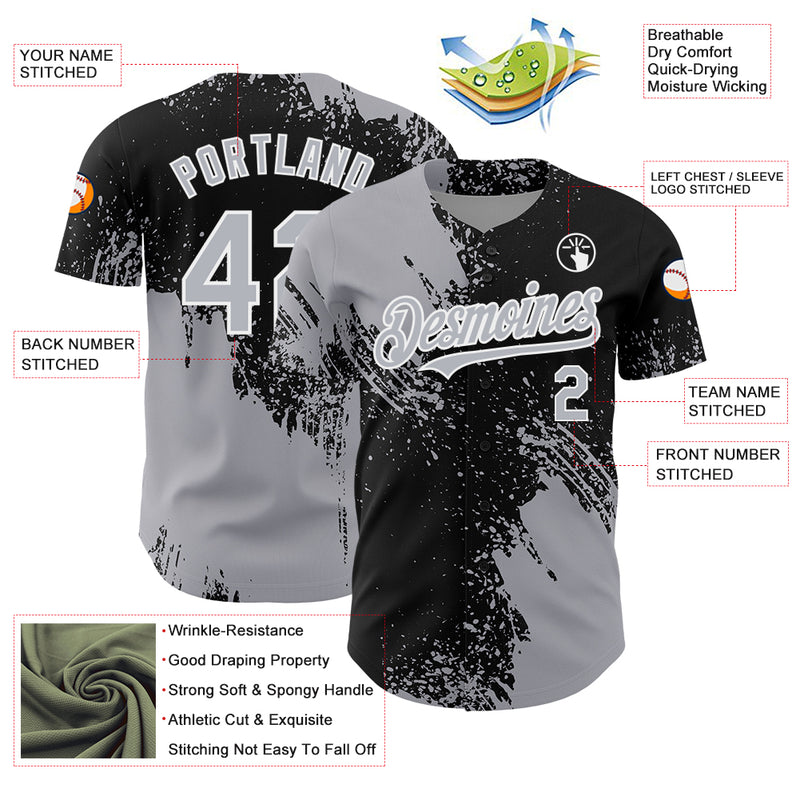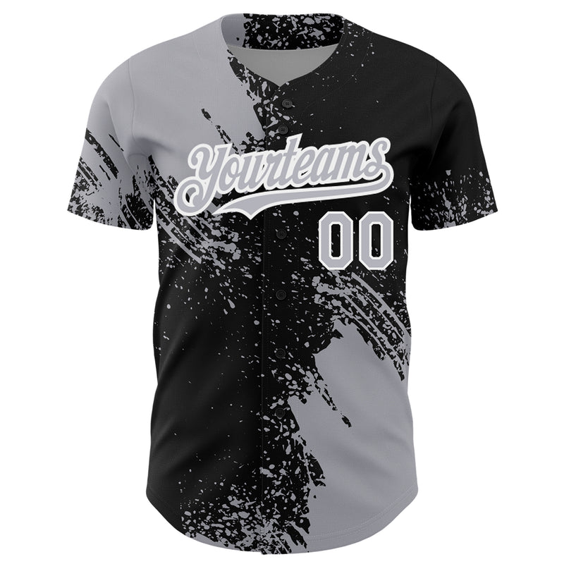 Custom Gray Black-White 3D Pattern Design Abstract Brush Stroke Authentic Baseball Jersey