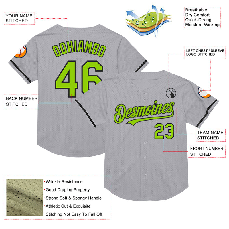 Custom Gray Neon Green-Black Mesh Authentic Throwback Baseball Jersey