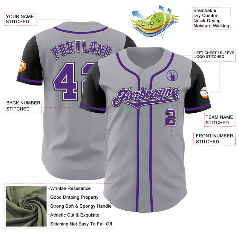 Custom Gray Purple-Black Authentic Two Tone Baseball Jersey
