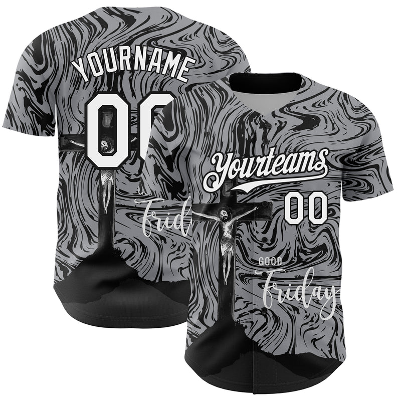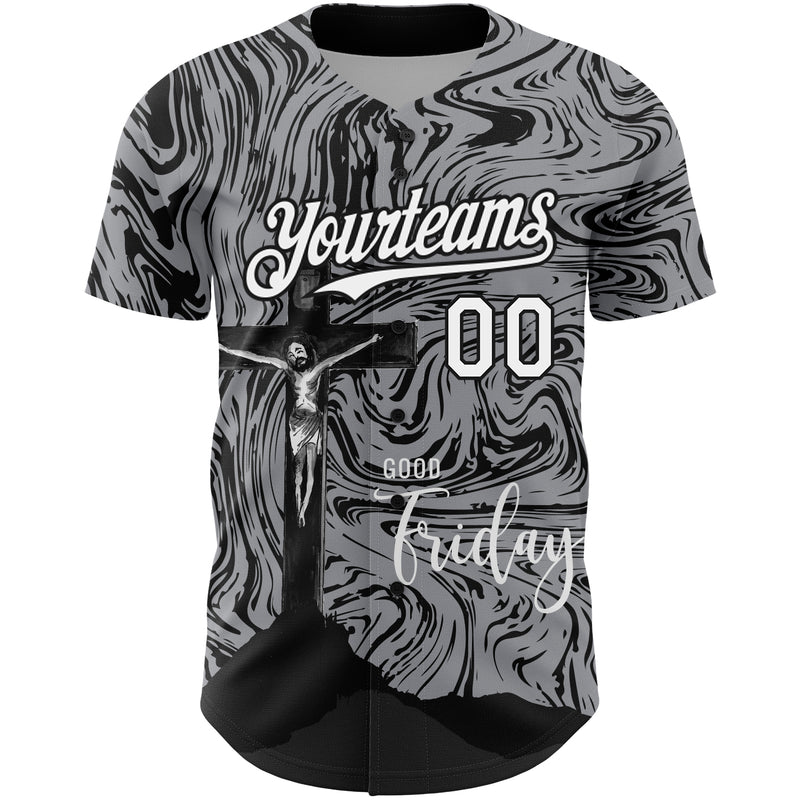 Custom Gray White-Black 3D Pattern Design Religion Cross Jesus Christ Good Friday Authentic Baseball Jersey