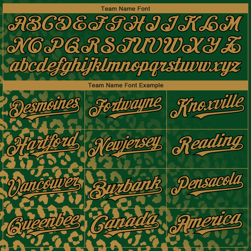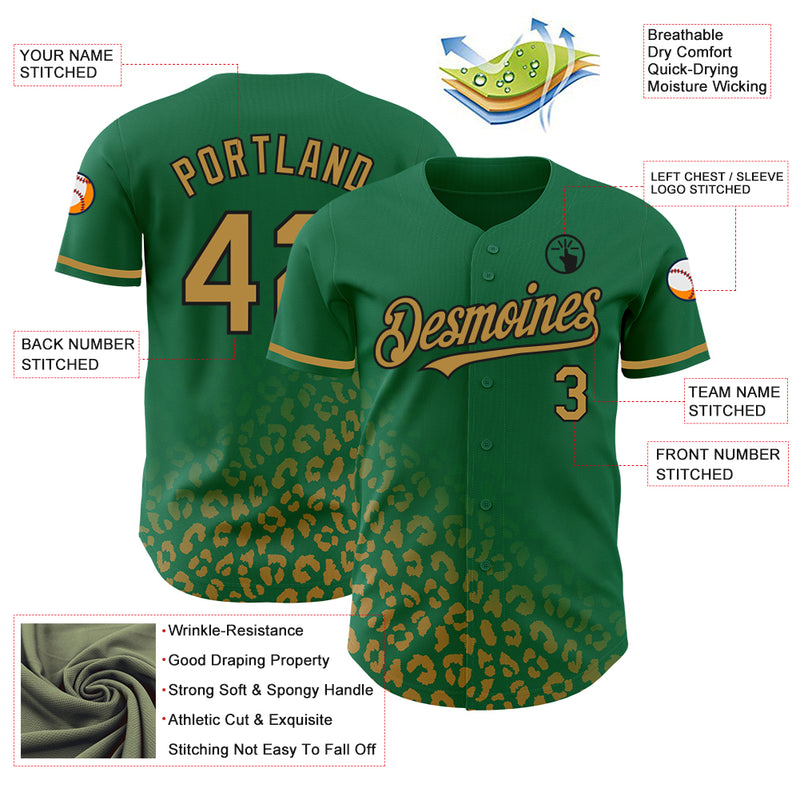Custom Kelly Green Old Gold-Black 3D Pattern Design Leopard Print Fade Fashion Authentic Baseball Jersey