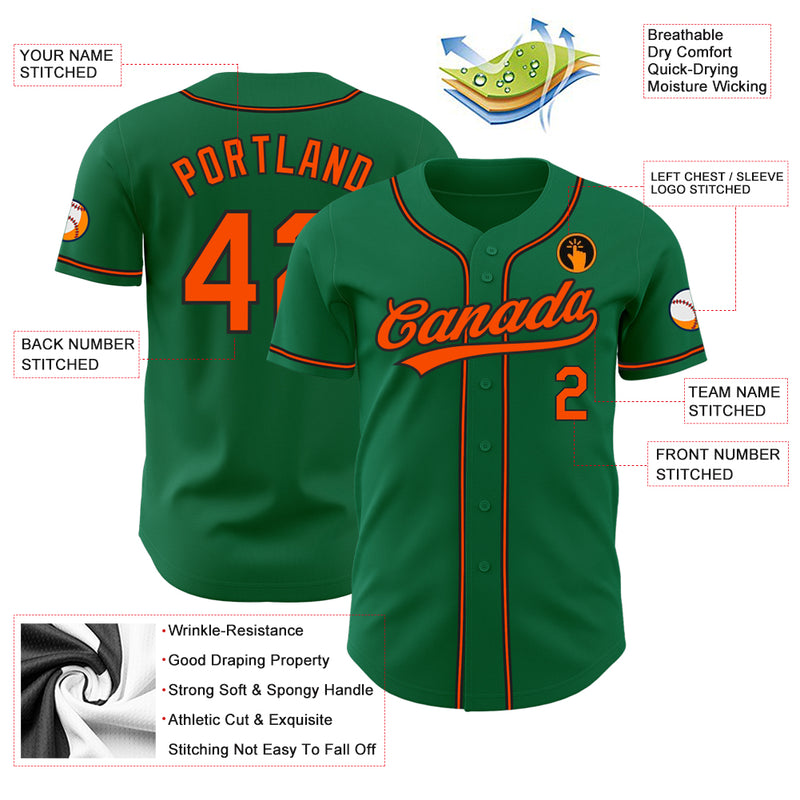 Custom Kelly Green Orange-Black Authentic Baseball Jersey