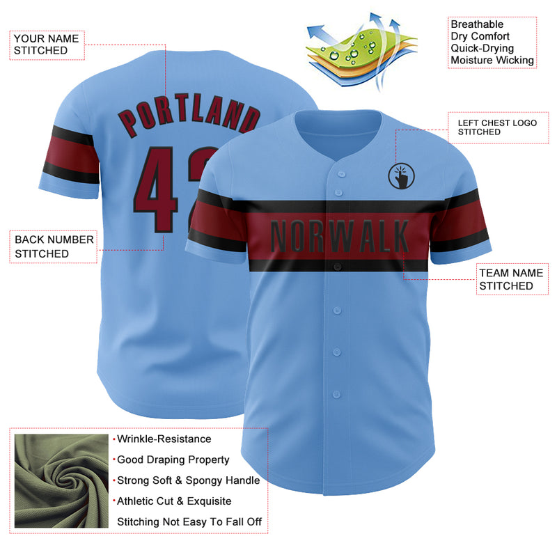 Custom Light Blue Crimson-Black Authentic Baseball Jersey