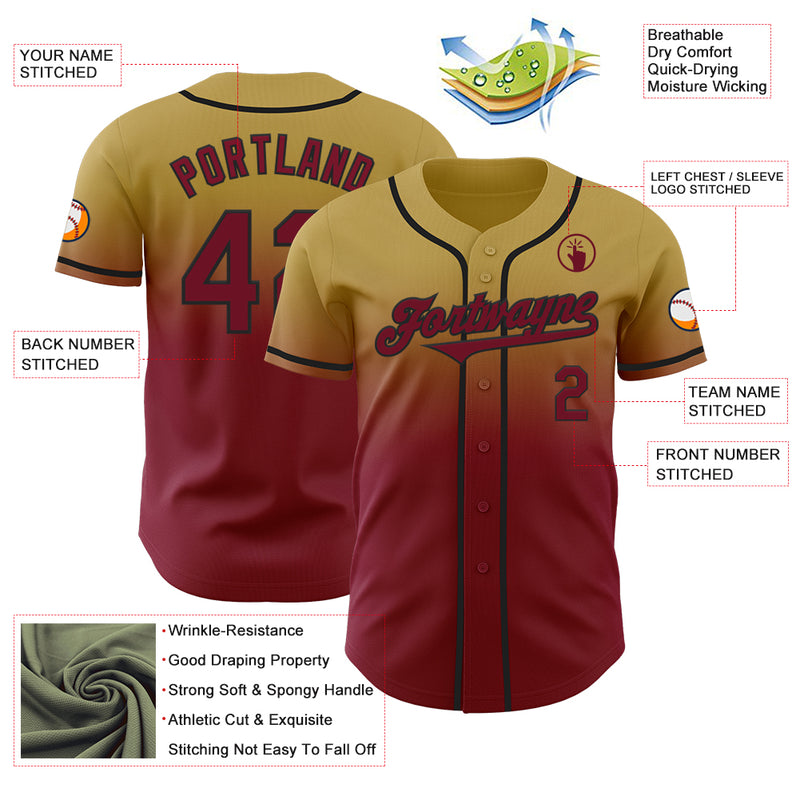 Custom Old Gold Crimson-Black Authentic Fade Fashion Baseball Jersey