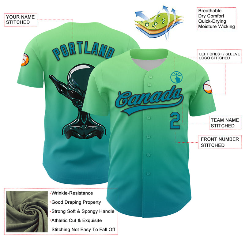 Custom Pea Green Teal-Black 3D Halloween Authentic Baseball Jersey