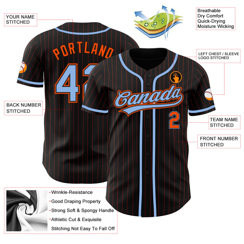 Custom Black Orange Pinstripe Light Blue Authentic Baseball Jersey