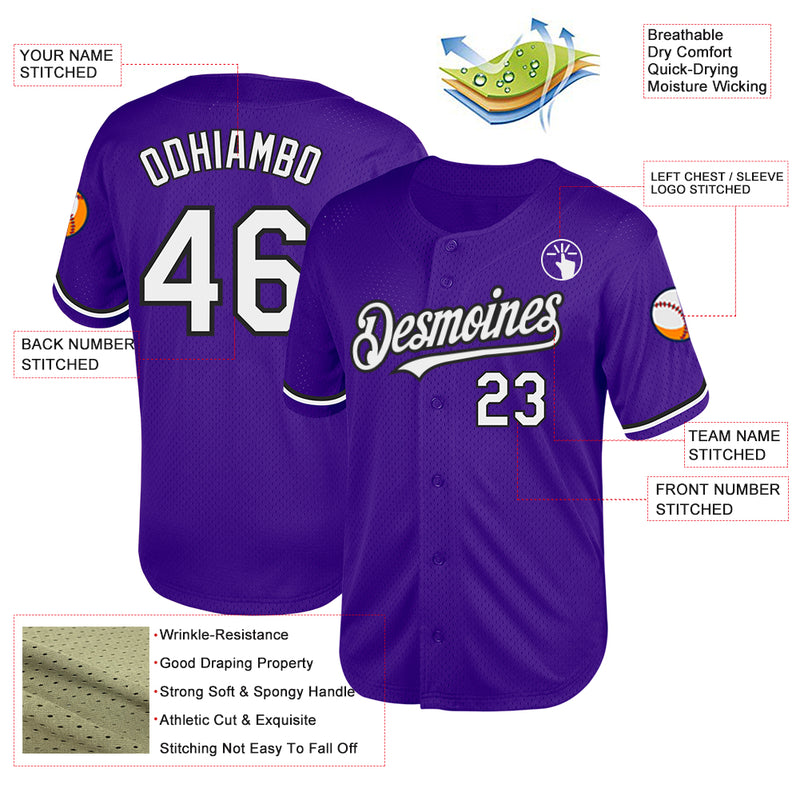 Custom Purple White-Black Mesh Authentic Throwback Baseball Jersey