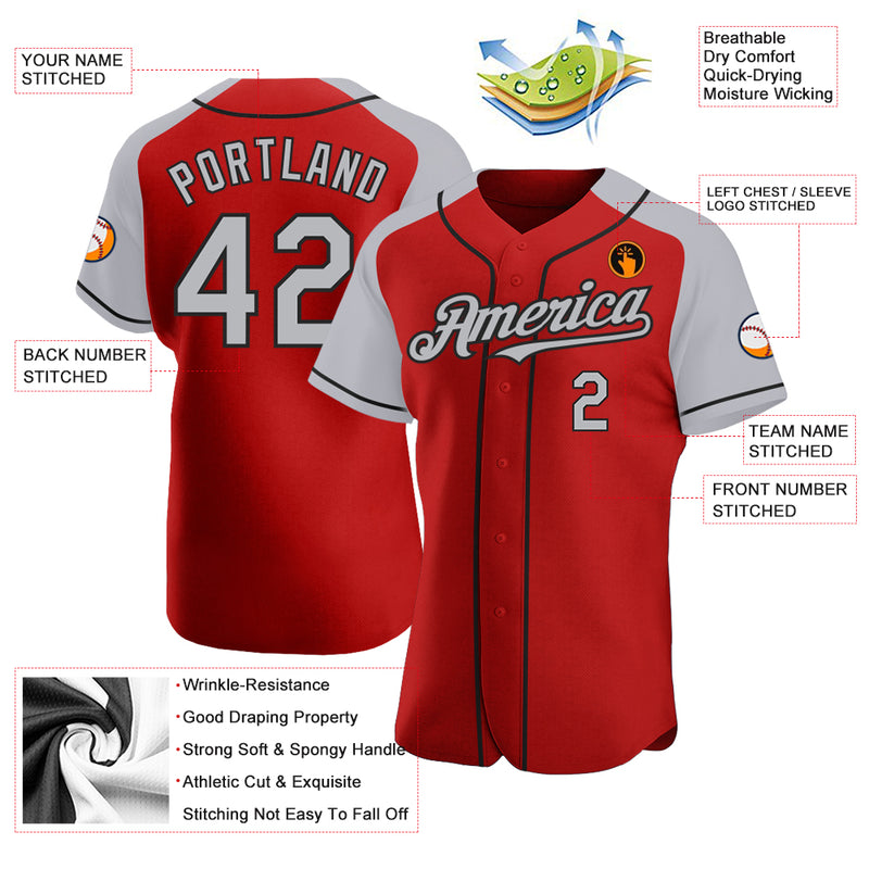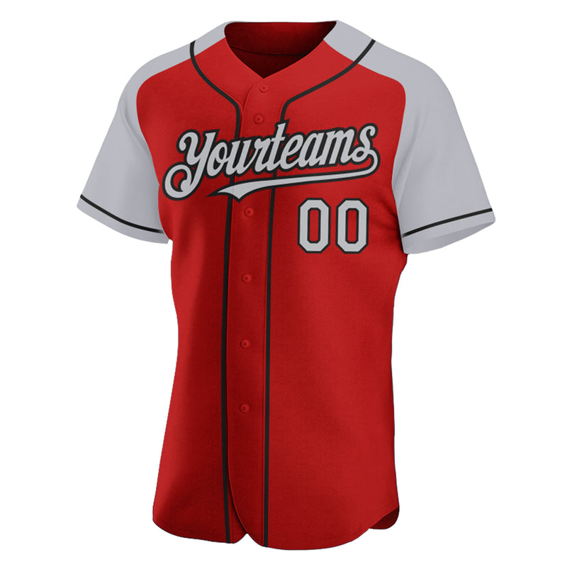Custom Red Gray-Black Authentic Raglan Sleeves Baseball Jersey